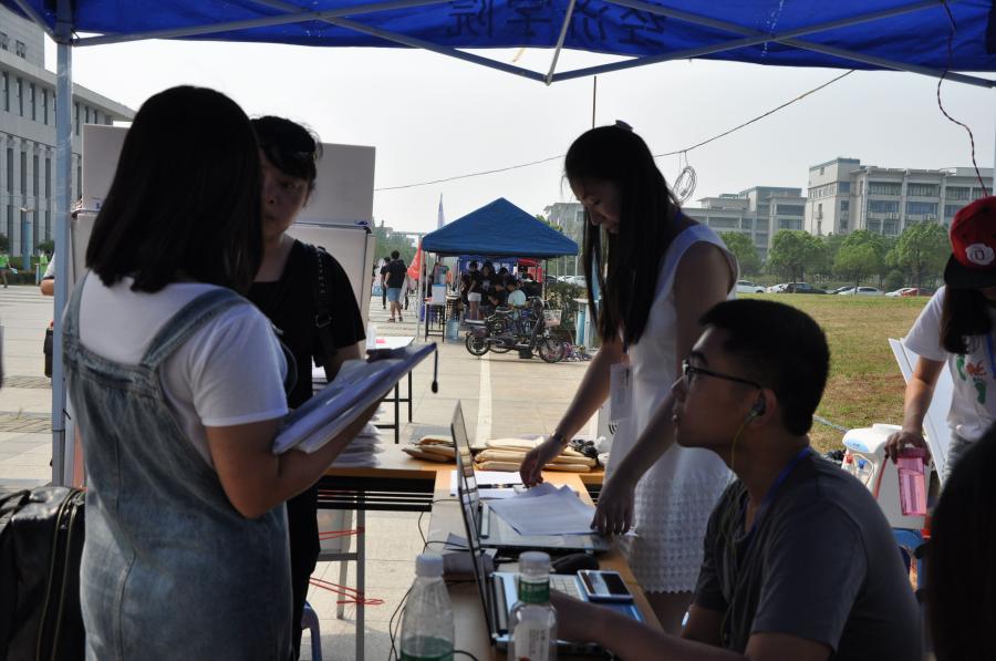 烈日炎炎,志愿者们在荷苑和鼎新大道之间来来回回一趟又一趟的接送学弟学妹们。可是当问起他们累不累时,他们说:“不累,值得!”还有的说:“去年就是学长学姐接我们,那时很感动,现在当我们成了学长学姐,接新生就是我们义不容辞的责任。”炎炎烈日,难敌新一届求学渴望;默默奉献,方显志愿者真诚无私。